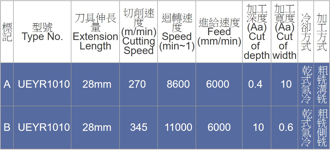 此款UEYR刀具,採取大負角設計,克服了傳統加工觀念。